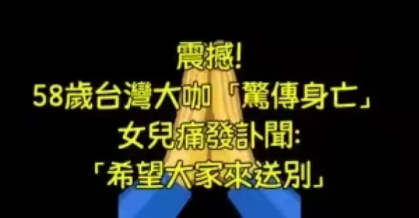震撼!58歲台灣大咖「驚傳身亡」 女兒痛發訃聞: 「希望大家來送別」