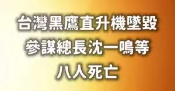 快訊/台灣黑鷹直升機墜毀, 參謀總長沈一鳴等八人死亡!