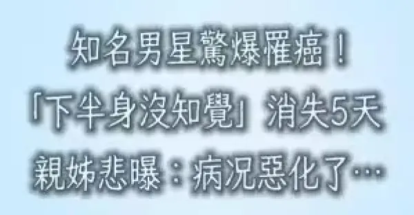 知名男星驚爆罹癌!「下半身沒知覺」消失5天 親姊悲曝:病況惡化了…