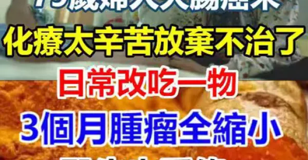 79歲婦人大腸癌末!化療太辛苦「放棄不治了」日常改吃一物「3個月腫瘤全縮小」 醫生也看傻