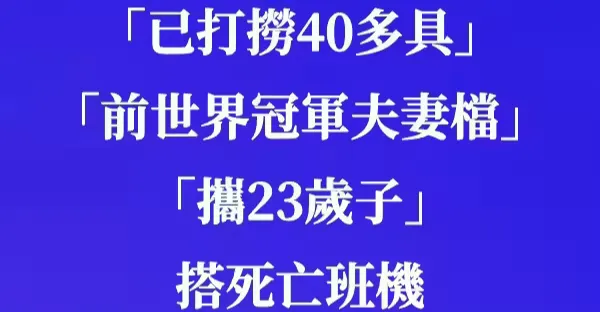67人罹難「已打撈40多具」! 「前世界冠軍夫妻檔」攜23歲子搭死亡班機 一家三口殞命