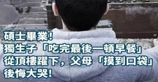 碩士畢業!!! 獨生子「吃完早餐之後」從頂樓躍下 「一摸口袋」 父母后悔大哭…