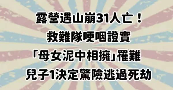 露營遇山崩31人亡 ! 救難隊哽咽證實「母女泥中相擁」罹難 兒子1決定驚險逃過死劫
