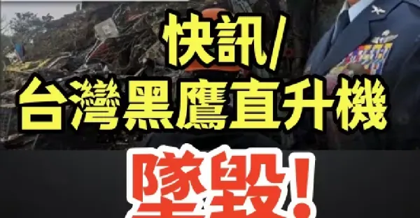 快訊/台灣黑鷹直升機墜毀,參謀總長沈一鳴等八人死亡!!