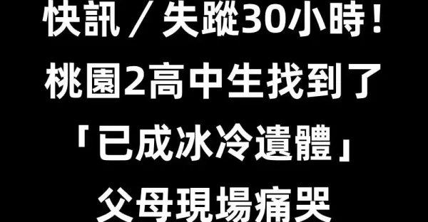 快訊/失蹤30小時!桃園2高中生找到了「已成冰冷遺體」 父母奔現場痛哭失聲!