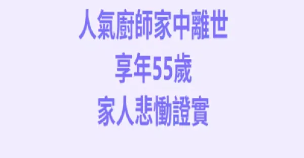 快訊/ 人氣廚師「家中離世」享年55歲!
