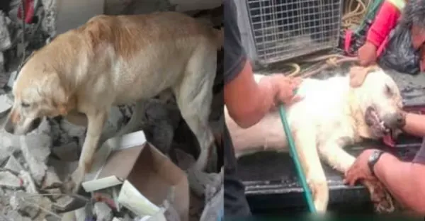 這隻搜救犬在地震災區「歇盡全力搜救」救出7位生還者後,吐舌離開人世.