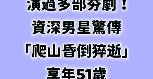 演過多部夯劇!資深男星驚傳「爬山昏倒猝逝」享年51歲!
