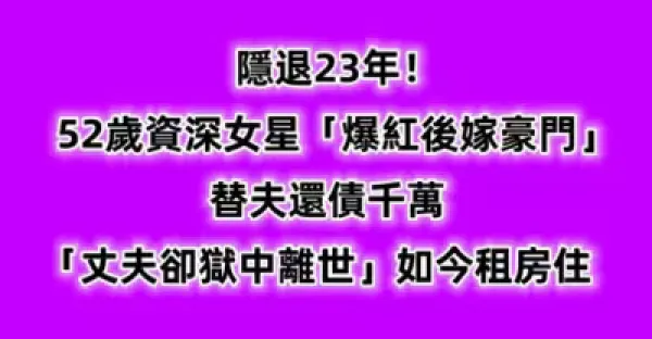 隱退23年!52歲資深女星「爆紅後嫁豪門」替夫還債千萬「丈夫卻獄中離世」:如今租房住
