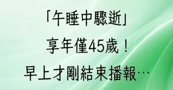主播驚傳「午睡中驟逝」享年僅45歲!早上才剛結束播報…死因曝光!