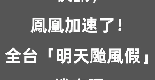 快訊/鳳凰加速了!!全台「明天颱風假」機率曝