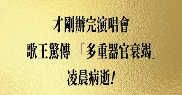 才剛辦完演唱會 歌王驚傳,「多重器官衰竭」凌晨病逝