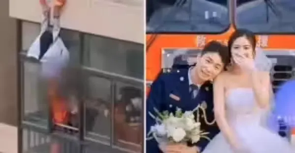 妙齡女失戀想不開!消防員救援「不慎扯掉她褲子」3個月後兩人結婚「超甜婚紗照曝光」:非你不嫁