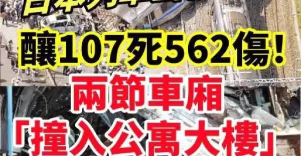 突發/日本列車出軌釀107死562傷!2節車廂「撞入公寓大樓」 出事原因曝光「駕駛害怕被罵」