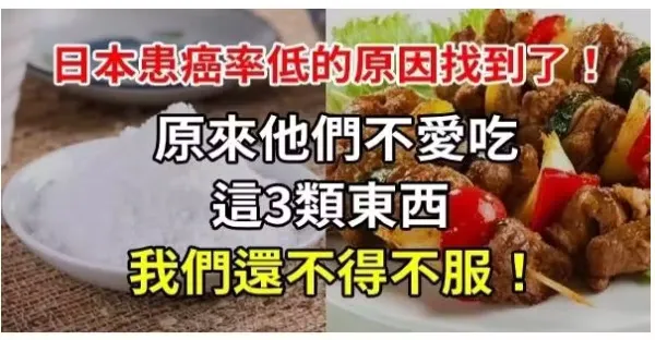 日本患癌率低的原因找到了!原來他們不愛吃「3類東西」,我們不得不服!