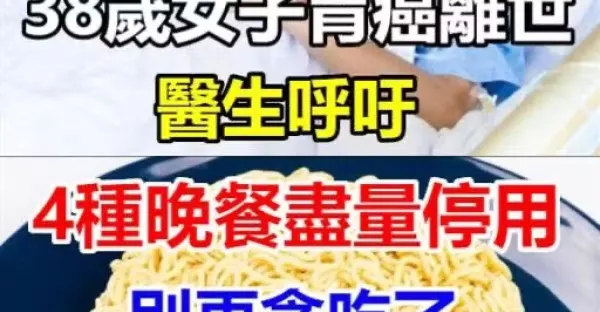 38歲女子胃癌離世,醫生呼籲4種晚餐儘量停用,別再貪吃了