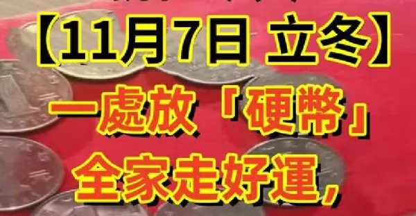 就在今天!「11/7日立冬」一處放「5枚1元硬幣」全家走好運,財運旺旺來!
