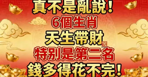 6個生肖天生帶財,特別是第二名,錢多得花不完