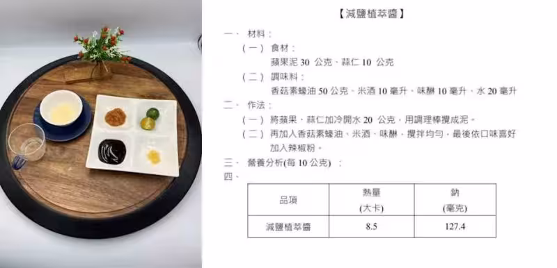 為解決傳統烤肉醬料過鹹的問題,營養師特別研發「減鹽植萃醬」,以蘋果泥等天然食材調製,建議民眾採用輕沾方式使用。飲品部分則推出「柚見金秋」,結合文旦、金桔及綠茶,不僅能解膩,更能減少含糖飲料的攝取。