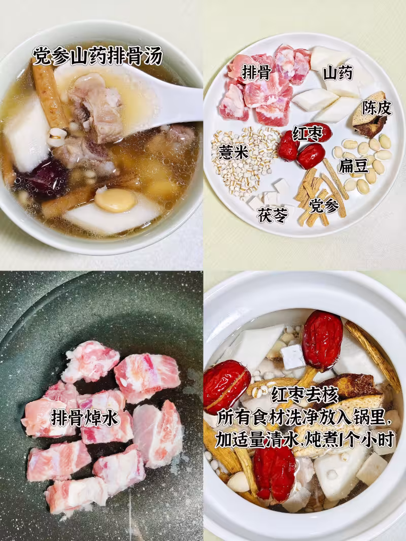 排骨,黨參,山藥,薏米,扁豆,茯苓,紅棗,陳皮