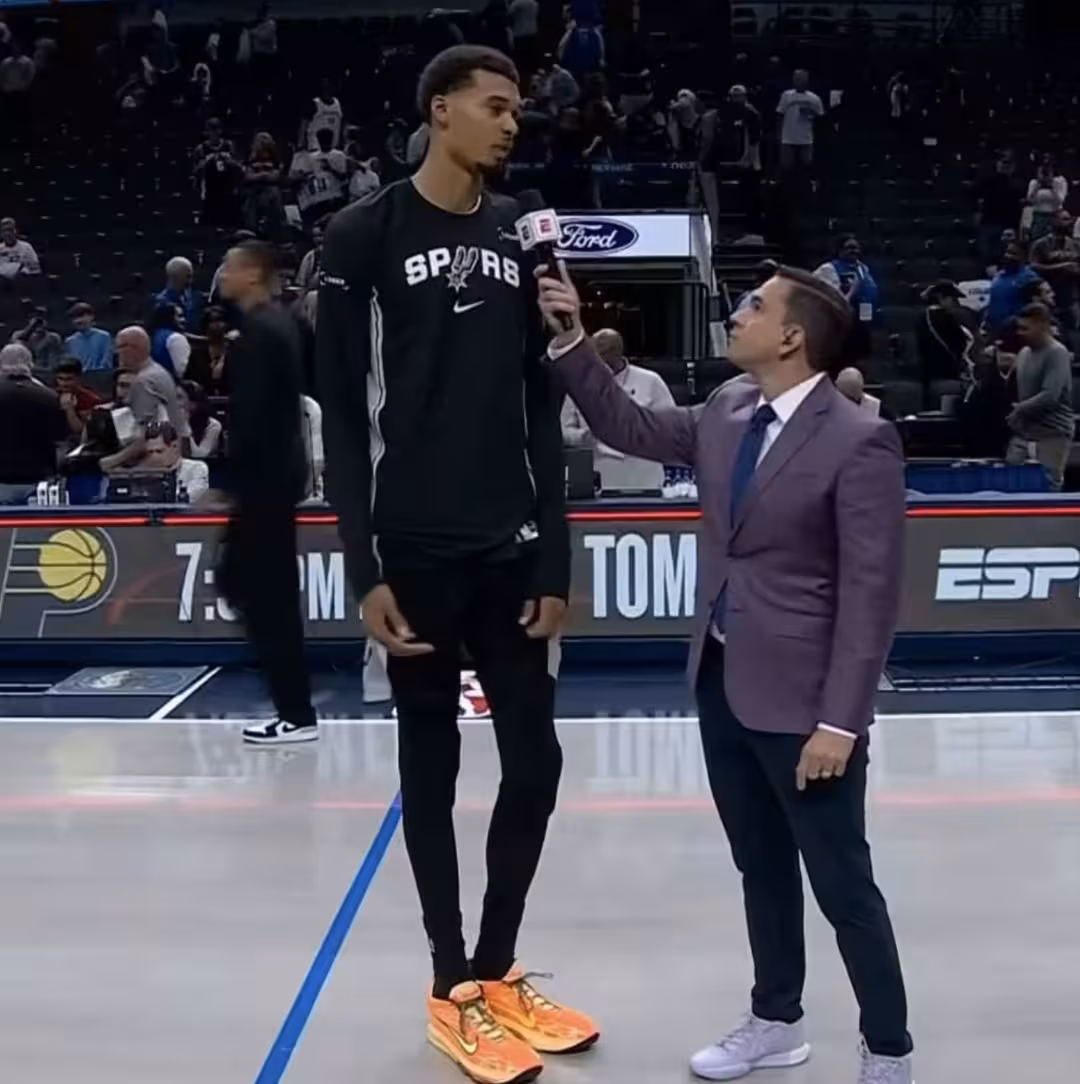 不過,如果你看到對面的狀元,可能還是會意難平。 嗯,說就是那位最近幾年身體天賦最強、最得天獨厚的文班亞馬。 能不能安排個稍微高點的記者採訪文班,這位記者再這麼採訪下去,都有職業傷害了,頸椎不友好型。
