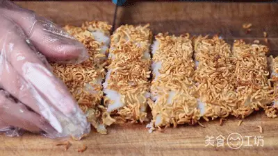 乾脆面充當了麵包糠的角色,配合著麵粉與蛋液,將魚肉牢牢地包裹住。使巴沙魚經過高溫炙烤,卻依然鮮嫩柔軟。