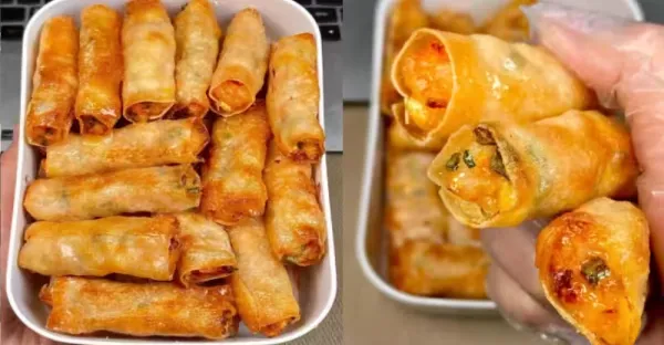 餛燉皮做的蝦滑卷,嘎嘎香巨好吃