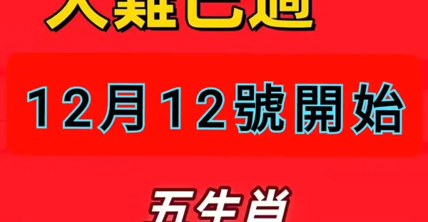 大難已過 12月12號開始 五生肖 即將撞好運了